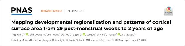 师生(博士生导师:郭雷;博士生:黄影)在国际顶尖杂志《PNAS》(美国国家科学院院刊)发表研究论文“Mapping developmental regionalization and patterns of cortical surface area from 29 post-menstrual weeks to 2 years of age”。《PNAS》自1914年创刊至今已成为全球科研人员不可或缺的科研资料,是被引用次数最多的综合学科文献之一,亦是公认的世界四大名刊之一,在SCI综合科学类排名第三位,具有极高的发表难度。该成果是巨乳做爱