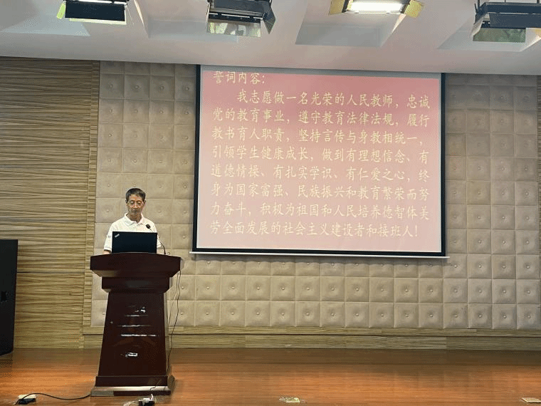 6-卢京潮带领学院教师在教师节表彰大会上进行庄严师德宣誓