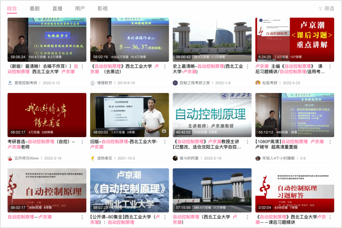 2-卢京潮《自动控制原理》B站公开课页面截图