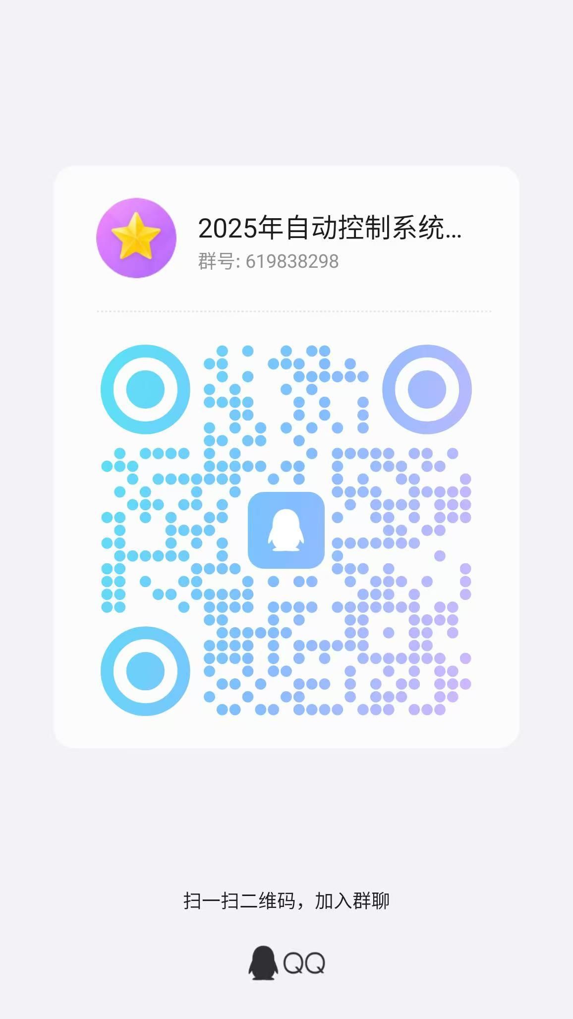 拟参赛学生请于2025年5月15日之前加入QQ群:619838298(2025年度自动控制系统实验技能竞赛交流群),按照群公告要求提交报名信息。