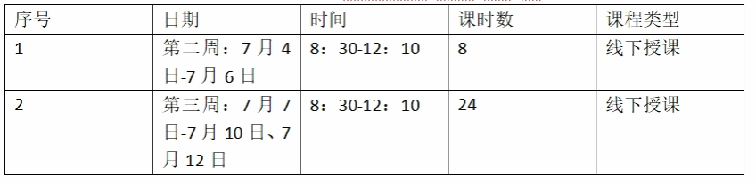 时间安排:2025年7月1日—2025年7月4日:早8:40-12:10,午14:00-17:40.。