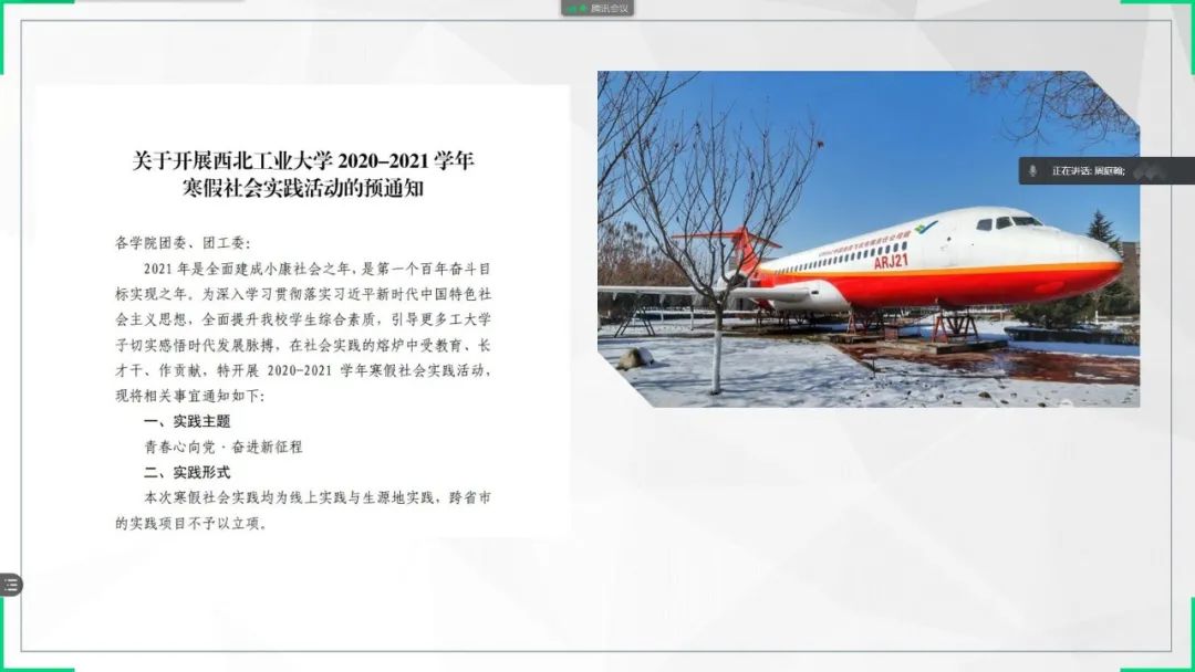 团委学习实践中心在线上召开寒假社会实践动员会。
