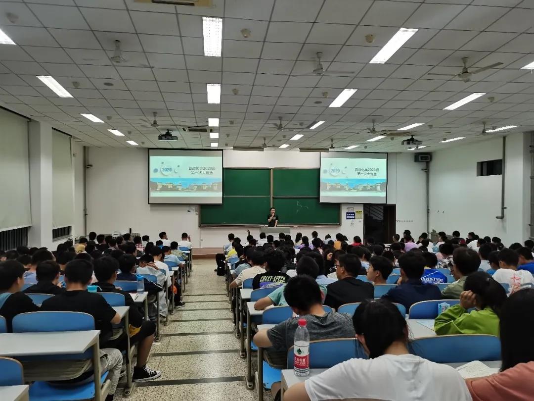 为了让自动化类2020级本科生尽快熟悉适应大学生活,帮助同学们快速熟悉校内各类规章制度,培养良好的学习生活习惯,明确奋斗目标,2020年9月16日晚,自动化类召开2020级本科生首次大班会。辅导员赵鑫、李航、谭博天及自动化类2020级全体本科生参加了本次会议。