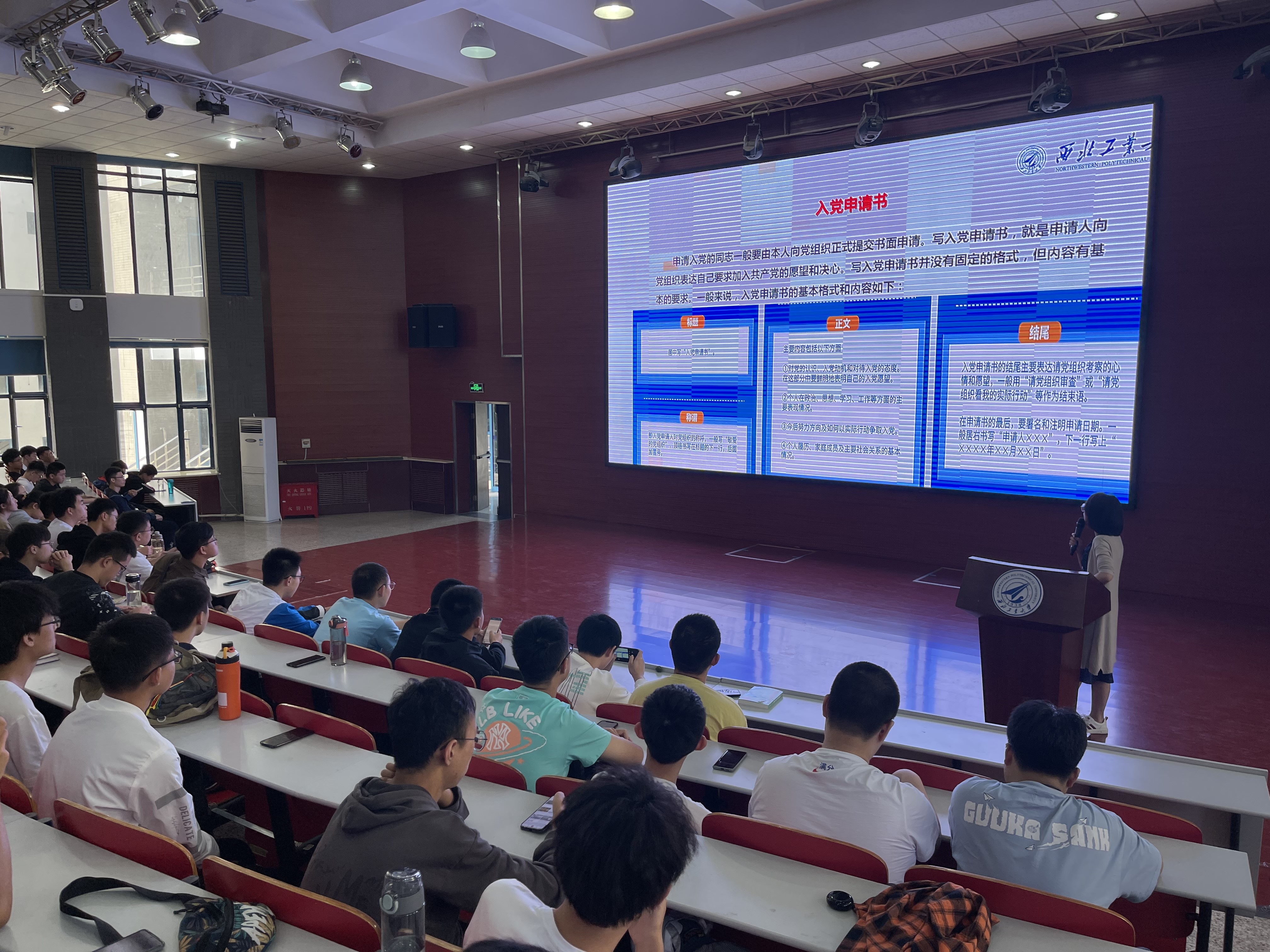 9月7日上午,巨乳做爱 党委副书记马玥在教西D100教室为2021级自动化类新生开展入党启蒙教育。