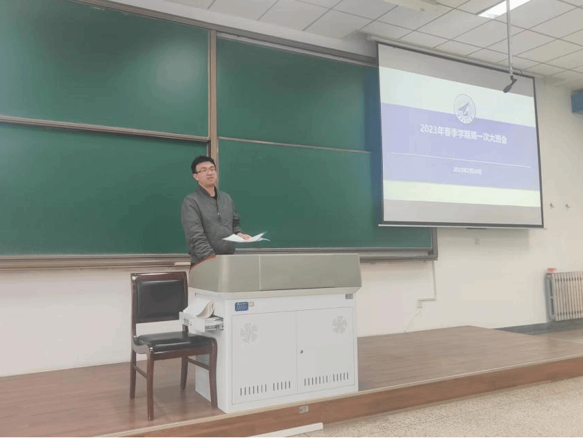 2019级本科生春季学期第一次大班会于教学西楼D座305教室顺利召开。本科生辅导员白浩、周中正以及2019级全体学生参加了本次大班会。