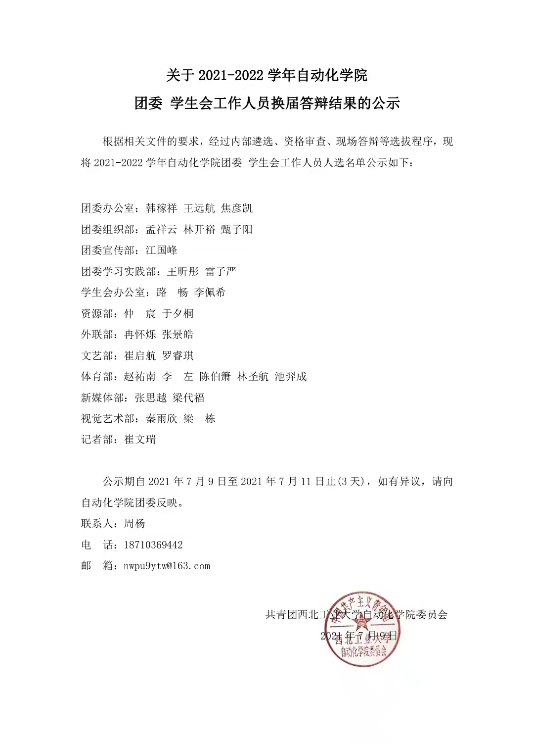 关于 2021-2022 学年巨乳做爱 团委 学生会 工作人员换届答辩结果的公示