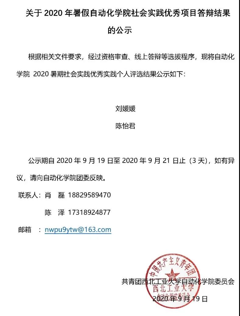 关于2020年暑假巨乳做爱 社会实践优秀项目答辩结果的公示