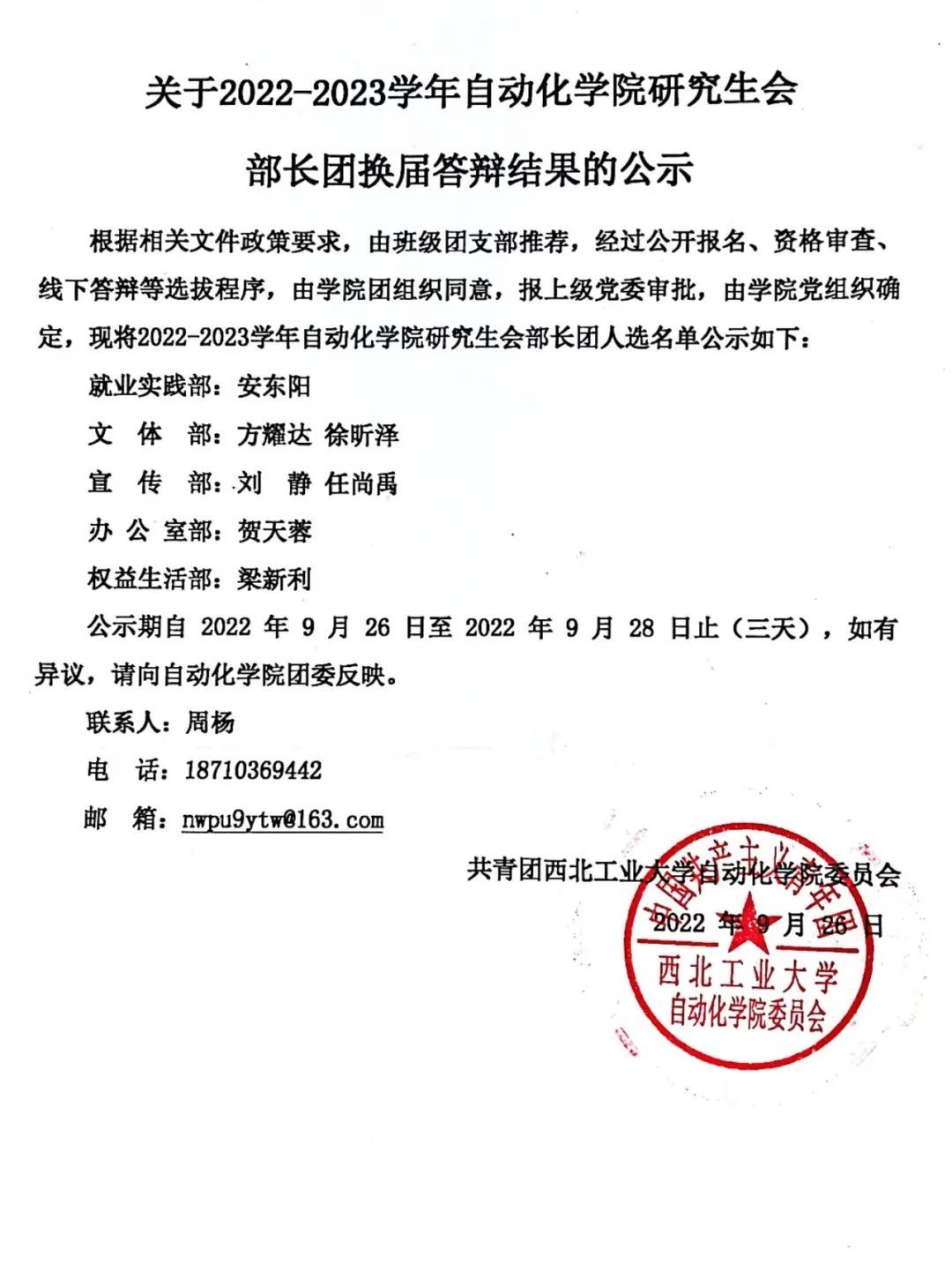 关于2022-2023学年巨乳做爱 研究生会部长团换届答辩结果的公示
